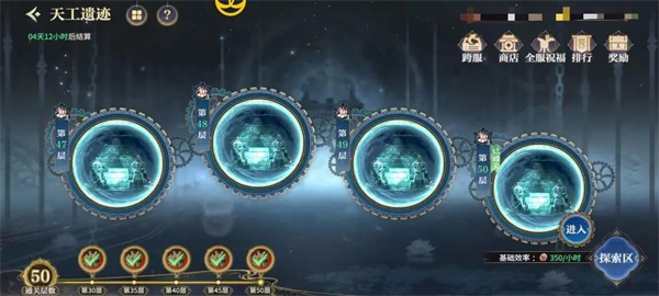4、天工遗迹每轮开放7天,每轮最后一天进行奖励结算和邮件补发,新一轮开始时所有人的探索时间重置为8小时,结算奖励和补发奖励不计入收益排行。