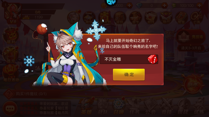 1、进入游戏,设置队伍的名称。