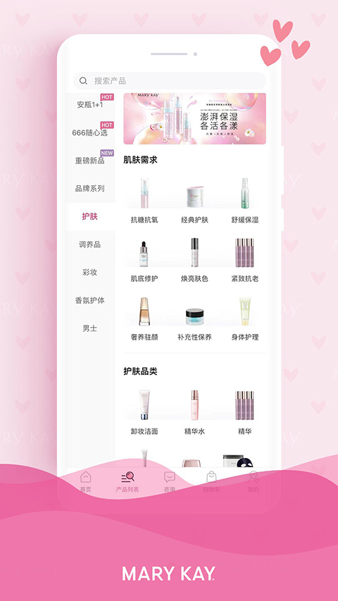1、护肤 面部精华,防晒/隔离霜唇部护理,其他保养,眼霜/眼部精华,面膜,化妆水/爽肤水/喷雾 乳液/面霜 2、彩妆 唇笔/唇线笔,眉笔/眉粉/眉饼,眼线笔/眼线液/眼线膏,粉饼,唇彩/唇蜜,粉底液/粉底霜/粉底膏,睫毛膏,眼影,遮瑕笔/遮瑕膏,蜜粉/散粉 3、护体 植物配方护体系列/异域风情护体系列/胸部护理/手部护理/唇部护理 4、防晒 舒怡防晒霜SPF20/PA++/艳阳防晒霜SPF30/PA++/晒后修护露 5、香氛 旅情系列/魅引香水/绅度古龙水/馨棉淡香水/馨情淡香水/心语香水 6、男士 男士洁面乳/男士爽肤水/男士保湿乳液软件特色