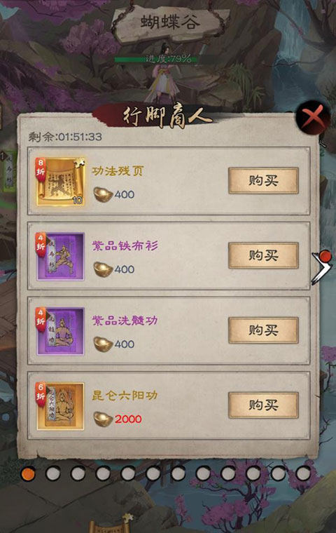 8、游历商店唯一推荐购买的就是8折的功法帖,可以在藏经阁活动时刷一波奖励,元宝不足时就别瞎买了。