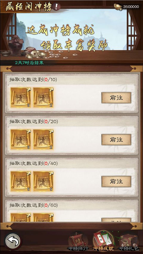藏经阁活动也是三天,抽取藏经阁红书也是需要元宝抽取。我粗略算了一下,如果每天玩家只拉元宝,每天拉够六十次稳稳的(三个镖师),每次按平均值去计算四级元宝,也是四千八百元宝收益,再加上每天的活动、每日任务、游历等,一天下来也是万八千的元宝,在本次活动我们能够攒三万到四万元宝,即使零氪也能有三万元宝起步,所以最低也有一百抽。在这里我要特别强调的是,这里元宝不要留,提升战力很重要,体力和精力弄完后,剩下的钱一定要在本次活动投放所有元宝。