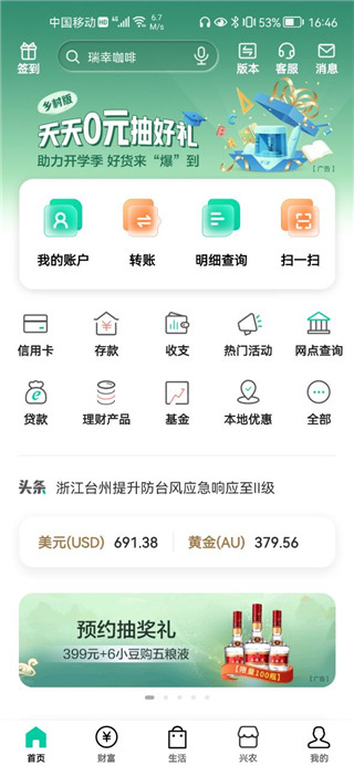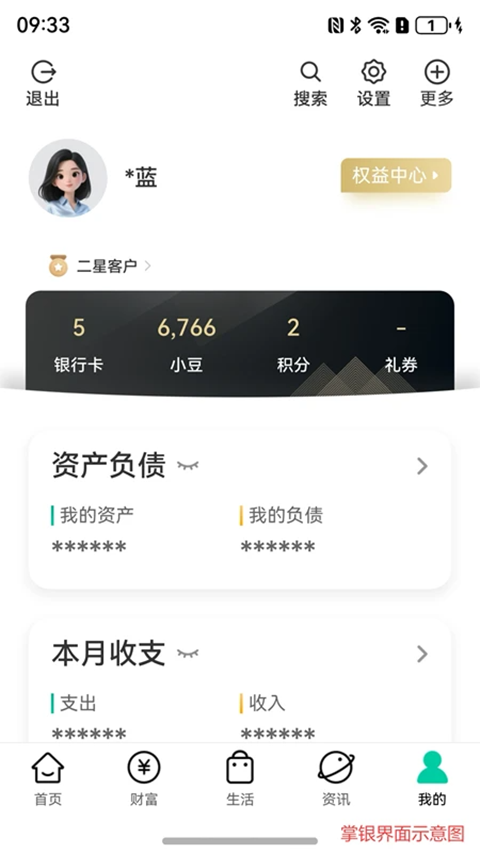 2、进入首页,这里可以查询账户以及自己的存款收支等等;