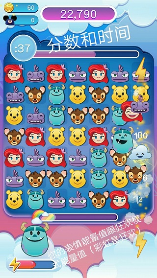 1、匹配表情符号以获得高分和解锁新角色,并收集超过400个迪斯尼和皮克斯表情符号字符和物品。 2、使用表情符号、超强道具和联合攻击引爆游戏区域、执行任务、提高分数并赢得奖励。 3、与您的朋友竞争,并通过表情符号包操作键盘共享收集的表情符号。 4、收集来自迪斯尼、皮克斯和星球大战的数千个表情符号、人物和物品。 5、使用迪斯尼、皮克斯和星球大战表情符号与朋友聊天提高你的能力。 6、引爆游戏领域,挑战你的朋友,主宰排行榜,每天参加特殊活动和新挑战。迪士尼表情包大作战玩法攻略