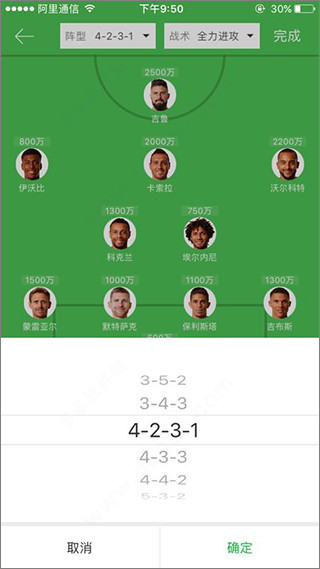1、选阵型,点击阵型下拉菜单,选择自己想要的球队阵型。