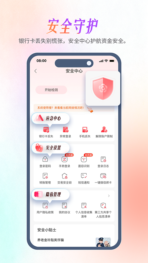 1、账户管理 2、转账汇款 3、基金代销 4、证券交易 5、贷款管理 6、生活缴费 7、系统设置 8、信用卡管理 9、理财产品认购更新日志