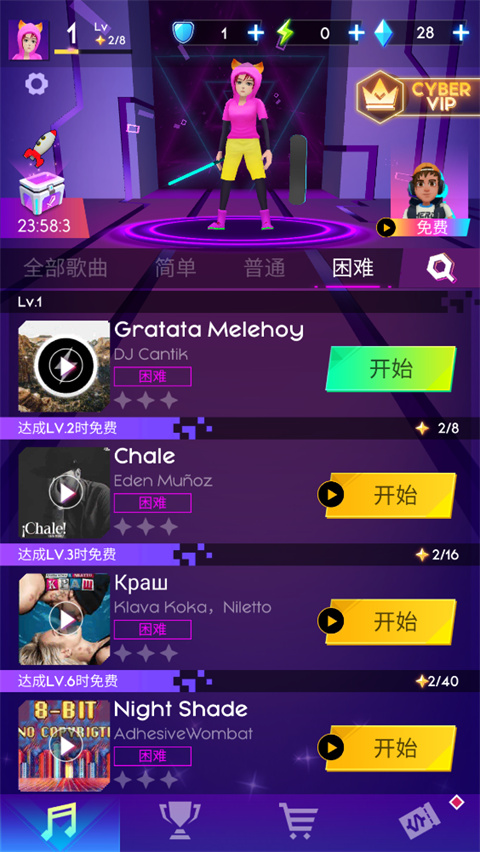 1、双击打开节奏骑士手游,你可以根据需求选择关卡的难度;