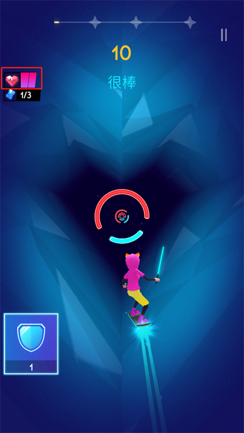 6、左上方的是血条,失误一次会消耗一格血条,血条见底游戏就会结束;