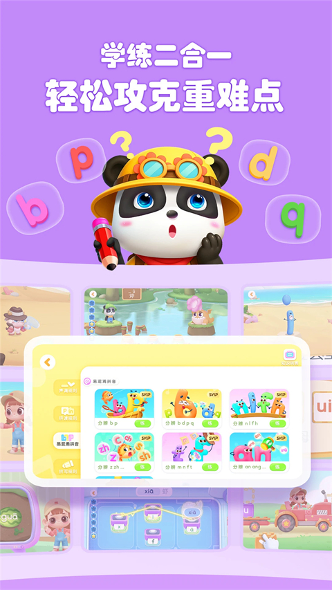 【新增】拼音新星计划 学拼音“ɑ”并分享,领取“奖学金”; 【新增】拼读识字“pu”课 听、读、练结合,趣味掌握拼音与汉字; 【升级】智能拼读机 词库大扩容,精选《新华字典》2000+字词,拼读学习更全面; 【新增】课程介绍 呈现课程体系与教学设计,家长选择更放心; 【宝宝巴士拼音】帮助儿童学习拼音发音与拼读,筑牢识字基础,轻松积累1000+词汇,开启自主阅读之旅!游戏截图