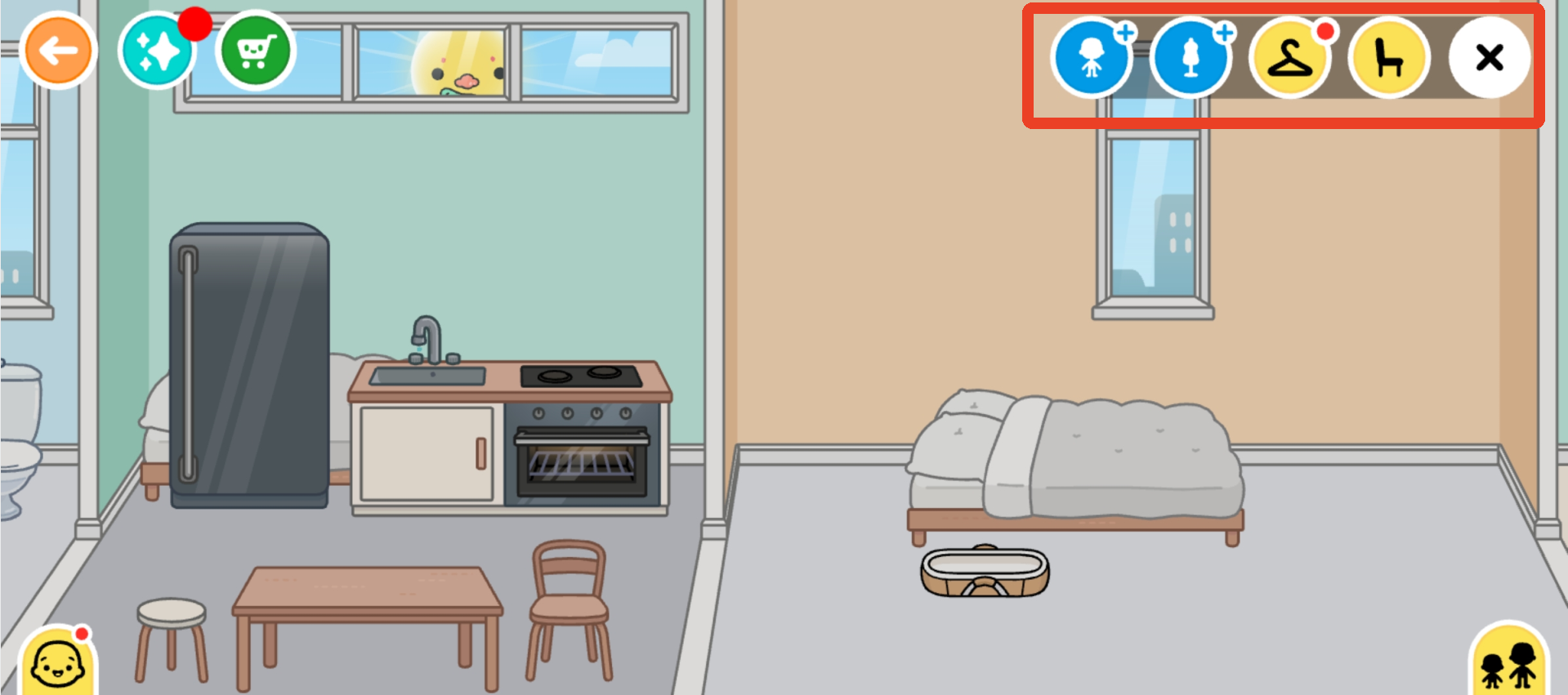 3、接着点击右上方图标,可以看到角色、服装和家具分类。