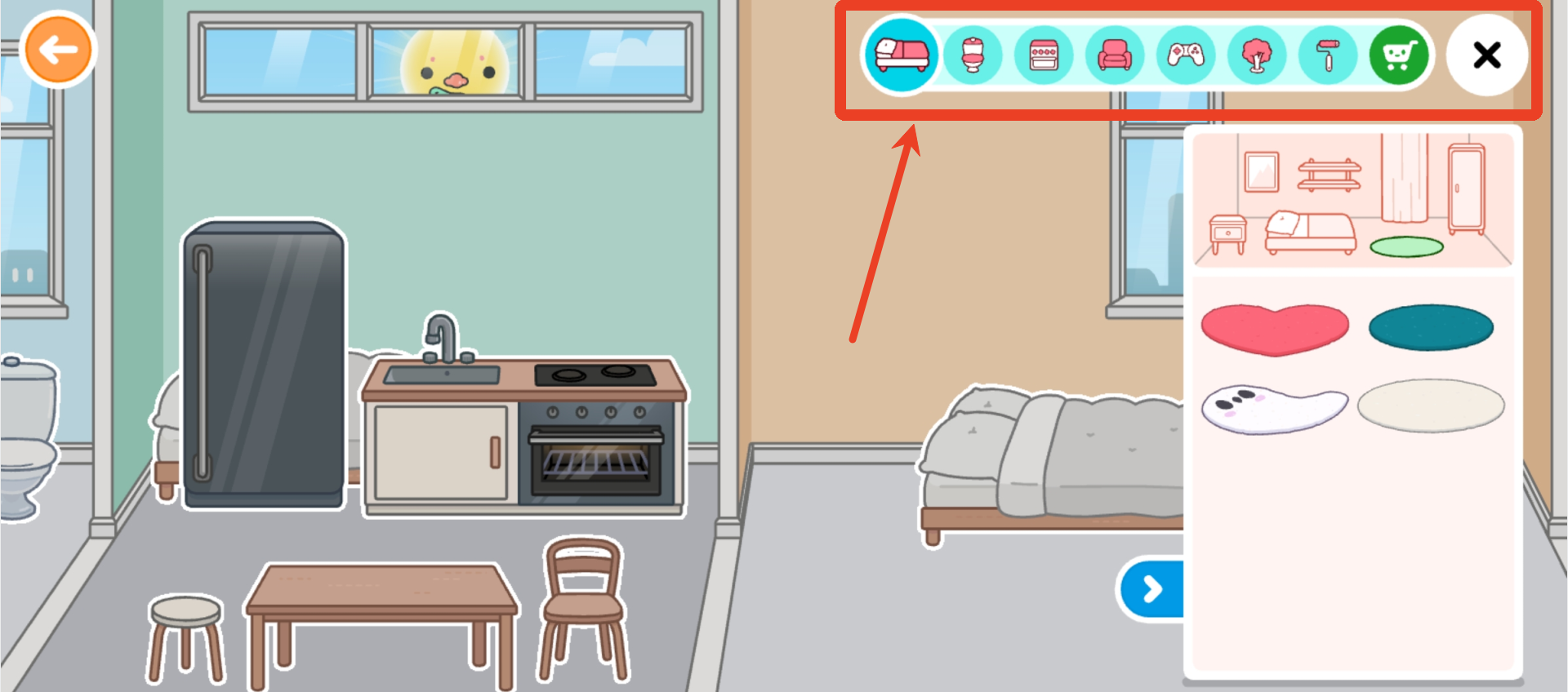 1、来到这个页面,点击下方小锤子按钮,我们就可以开始选择房子的位置啦!