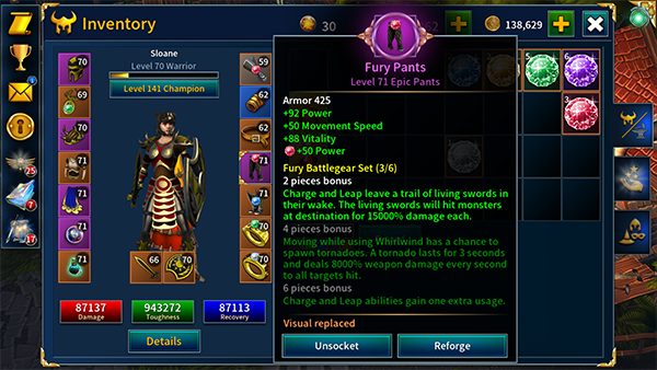 1、这游戏总共三种角色,战士、枪手、法师。目前楼主只接触了战士、枪手,当然法师也很强势,下赛季想入手法师#(哈哈)。前期刷钱刷宝石推荐用枪手、专门刷宝石的话根据大佬们的说法是法师、具备秒杀全屏的技能。下面说说刷金币,首先你要有一个枪手角色,具备金币装。何为金币装,也就是属性带金币的装备!在铁匠那里锻造,推荐蓝装即可,需要注意的是为了追求效率、裤子、鞋子要带移动速度!刷金币套装推荐用突袭者四件套,效果如下增加70移动速度!楼主一身76以上蓝色金币装,裸金币加成在1000%+吃了75钻石的药也就是3000%+新人量力而为,有个2000+就可以开始刷