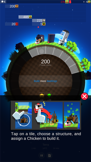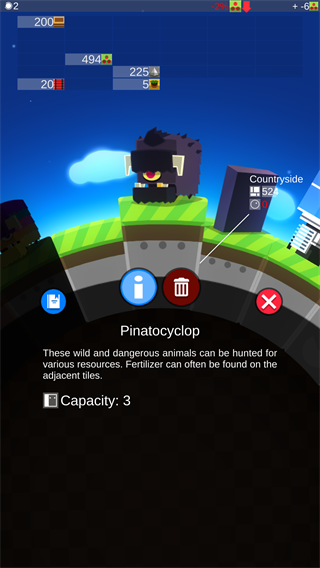 1、游戏画面 画面比较普通,没有太多华丽的页面,除了是英文这点之外,其他看上去是很清晰的。游戏中吧画面切割成为一个个的方块,方便大家去辨认,大家可以在不同的方块上制作不同的内容,让你操控起来也会变得更加轻松。而且各方面先得很简单,的确很有轻度游戏的样子。 2、游戏玩法 玩法其实和大多数的经营类游戏的玩法是相同的。需要你不断的扩张自己的领土,每一块领土的使用都要利用好。当然你并不是一个人,你的周边还会有一些邻居,你需要和这些邻居进行交易,并且相互沟通,不要发生战争,不要有太多的麻烦。而且努力的发展出一个品种多样的星球,让星球变得更加的出色。 3、游戏操作 作为一款经营类的游戏,其操作上的确不需要很大的技巧,更多的还是集结在策略上。这块土地要如何使用它?我们现在的子民缺少什么,我们到底要如何选择?在满足行星需要的同时,我们还要积极的去开拓新的资源。这款游戏毕竟是轻度游戏,所以在资源以及升级的算法上并不算很难。300天之内你可以建立其一个什么样的星球呢? 4、游戏特点 这款游戏的核心其实是资源算法问题,如何才能最大化这一块土地的作用,如何才能利用好资源。这对于玩家来说可比经营一两家小店要好的很多了。游戏的可玩性很高,会有很大的空间可以去尝试。当然300天的限制对于玩家也是一个考验,让玩家在一次次的锻炼中变得越来越强大。经营的能力越强,也会让玩家有一种终点的感觉。更新日志