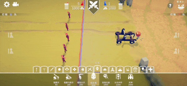 游戏包含两种主要模式:战役和沙盒。在前者中,玩家获得有限的游戏内资金来组建军队以击败敌军。在后者中,没有金钱限制,玩家可以建立两支军队。两支对立的军队可以放置在地图的相对两侧,也可以一支包围另一支。玩家一点击“开始”,战斗就开始了,两军冲上去互相攻击。一旦任一军队被击败,战斗就会冻结,玩家会被告知谁是胜利者。