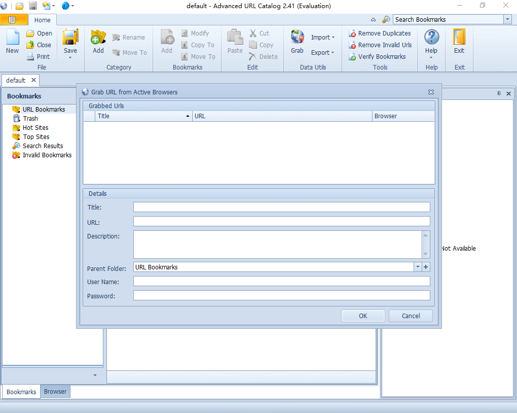 Advanced URL Catalog软件是一款非常方便的浏览器网址收藏管理工具。我们知道现在已经不是IE浏览器一家独大的时候了。这里有非常多的优秀的浏览器可以选择了。比如google Chrome浏览器、火狐浏览器、opera浏览器,还有国内的360浏览器、搜狗浏览器等。我们可以同时使用几款,但是不同的网址收藏夹怎么进行管理就是个大问题了。当时有了Advanced URL Catalog,可以帮助高效的管理各种浏览器中的所保存的网页书签,也就是收藏夹所收藏的各种网站!支持从IE、Chrome谷歌浏览器、firefox火狐浏览器、opera浏览器导入导出书签!支持移动、删除、创建等各种管理功能!支持给单独的网址保存用户名和密码!功能非常强大而专业!所以,非常的方便。如果你也使用过个浏览器,那就赶紧下载这款高效的网址收藏管理工具吧!