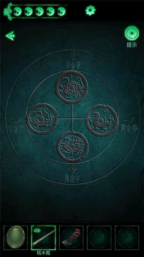5、点击墓门上的四象八卦机关,根据石柱上的刻痕,调整二十八星宿和十二生肖的位置与四象对应。