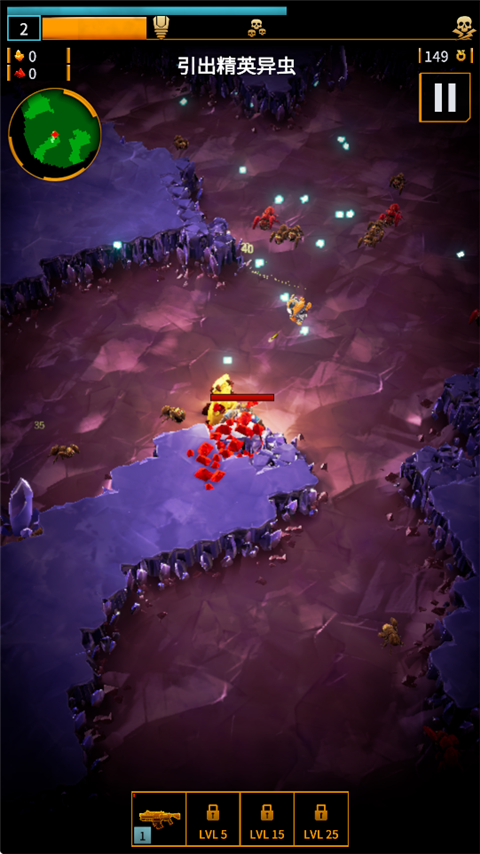 1、游戏采用俯视角自动射击机制,武器能自动瞄准攻击异虫,玩家无需分心瞄准,可专注于操控矮人走位躲避弹幕、挖掘矿物。 2、游戏里霍克斯星球的洞穴地形、矿物分布以及异虫波次均由程序生成,且每局任务要穿越的五层洞穴都有独特环境,玩家每次开局都会面临全新挑战。 3、玩家升级时可自由强化武器的伤害、射程等属性,或是提升角色的移速、暴击率等增益。更新日志