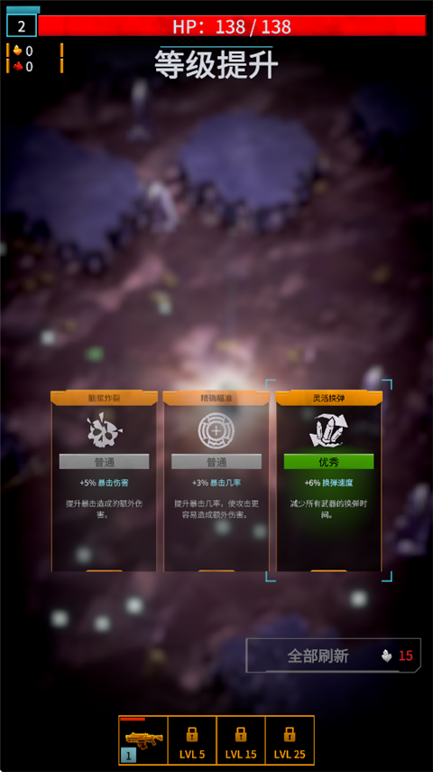 4、等到经验值满升级时,玩家可在三个加成中选择一个。