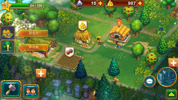 1、进入部族游戏后,首先点击浆果,树木等资源,并等到部落成员前来采集,采集完成后再次点击便可收获成功,期间玩家可以将正在进行采集部落的成员再次分配,并等待上一次任务的结束,方可继续下一项工作;
