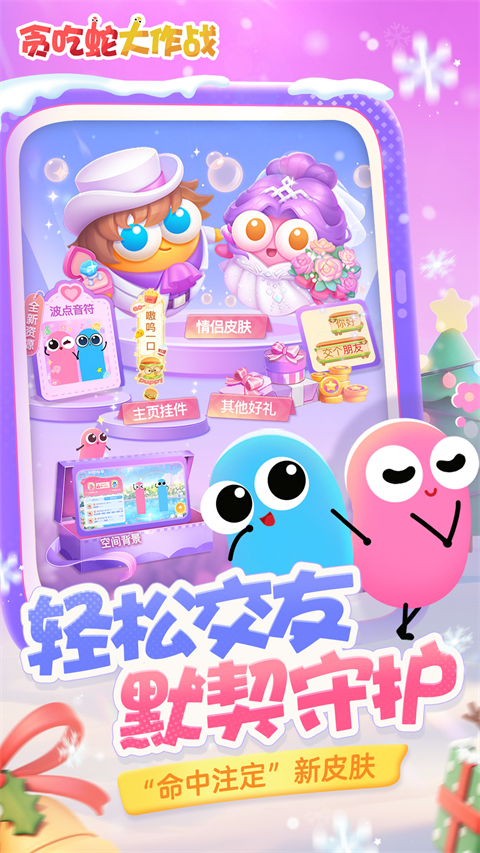 1、以小搏大,战局随时都会逆袭本 你长你厉害,我短我灵活!大蛇不再有统治性的地位,小蛇们更灵活,战局随时都有可能逆转。 2、简单有趣,老少皆宜的全民游戏本 不管是什么年龄、什么性别、什么职业,只要简单的在屏幕上戳戳戳,就能在贪吃蛇大作战找到满满的乐趣。 3、战斗技巧,老司机教你几招本 急速超车拦截蛇头、急停甩头抢道、180度华丽飘逸、画个圈圈诅咒你…这些都是战斗技巧。 谁说贪吃蛇大作战只靠手速?策略也很重要,当然如果你恰好单身又练过手速 —— 完美。 4、这个游戏有毒,根本停不下来本 超Q超萌画风,一局一局像中毒了一样,根本停不下来,哈哈哈哈哈。游戏亮点