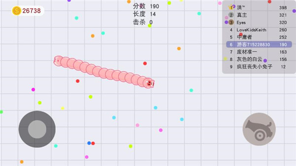 1、适时反杀 跑路也并不是单纯的跑路的,大家在跑的过程中,其实也在吃光点对不对?本来大家是一样长度的,跑着跑着你比他长了也是有可能对不对?突然间你吃到了尸体变很长了也是可能的对不对?因此如果别人追你,而可见范围内还有不少光点的话,可以不用跑太快。继续前进路线,到他要冲过来的最后时刻才扭头。甚至过程中你比他长很多你,你可以加速上去围住对方,杀对方一个措手不及。我能反杀,也不一定是错觉嘛。
