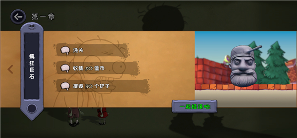 1、打开僵尸不能死游戏,进入关卡中,开始游戏前会显示本关的三星达成目标。