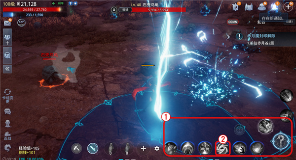 - 点击右下端攻击图标攻击近处的目标。 (PC使用F键)