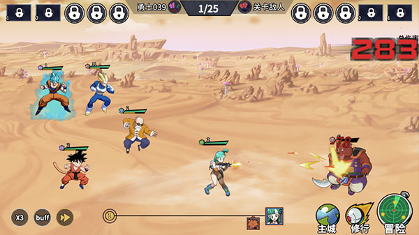 6、战斗是自动进行的,左下角可以加速,随着等级提升,可以解锁更多功能;