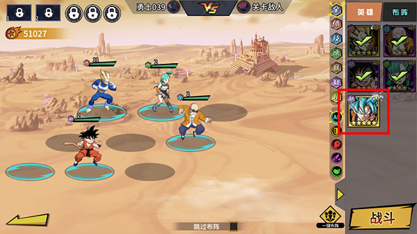 4、战斗开始前,先点击右下角安排上阵的英雄;