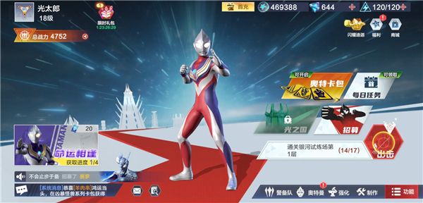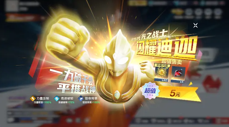 17级解锁首领战第一次打完后会弹出闪耀迪迦5元的购买礼包,其中还包含有4个贝利亚源质,这个是必买礼包,就和介绍的一样,微氪战神,其中的贝利亚源质更是升级专属核心神卡的必备材料,会很缺。