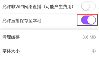5、勾选“允许直播保存至本地”栏目右侧按钮进行开启。