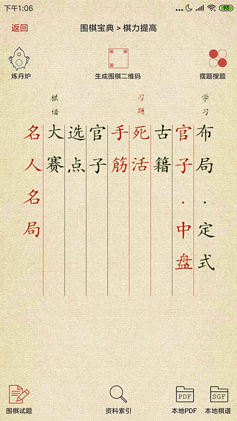 1、在这里可以观看app提供的围棋视频,观看视频内容可以学习许多围棋知识。 2、用户能够搜索平台提供的棋谱内容,通过棋谱就可以了解许多围棋的布局样式。 3、能够在平台制定学习计划,让用户通过学习计划进行科学高效的学习。 4、查看app提供的各种习题,在平台用户就可以直接练习对应的围棋习题。 5、您感兴趣的内容都可以收藏起来,在空闲的时候就能学习更多围棋知识。围棋宝典app怎么打谱