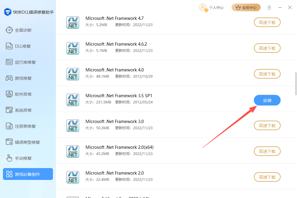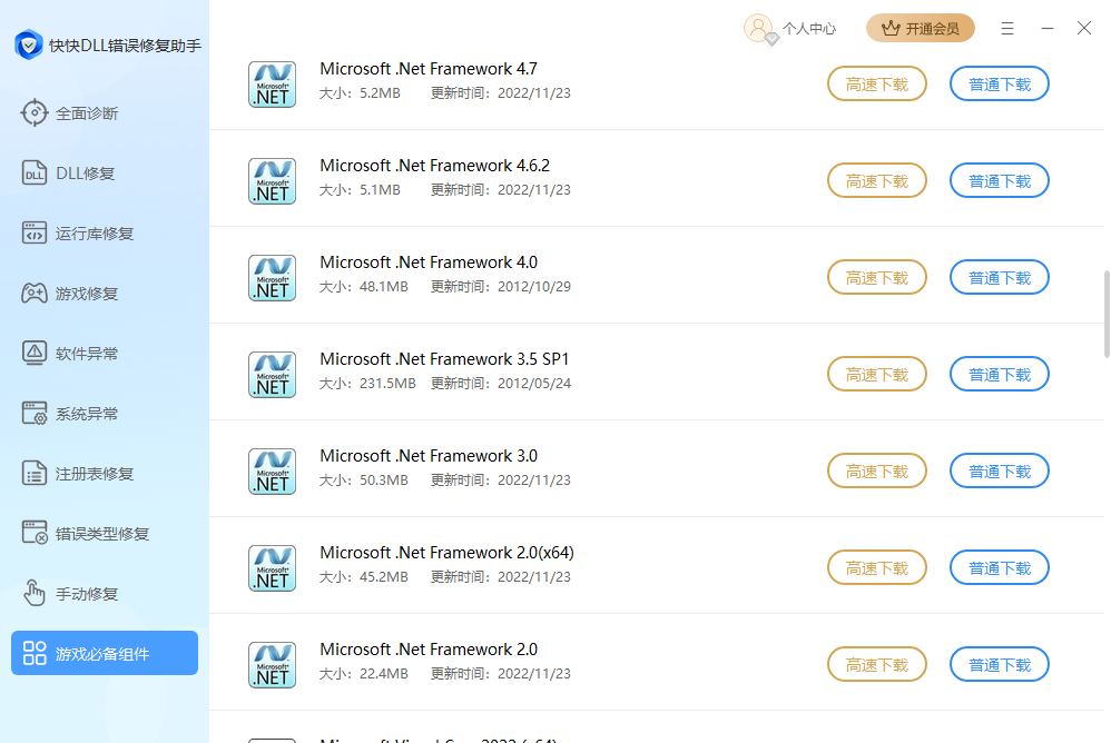 7、游戏必备组件功能提供了全面的运行库下载资源,用户可以选择需要的运行库进行下载安装。