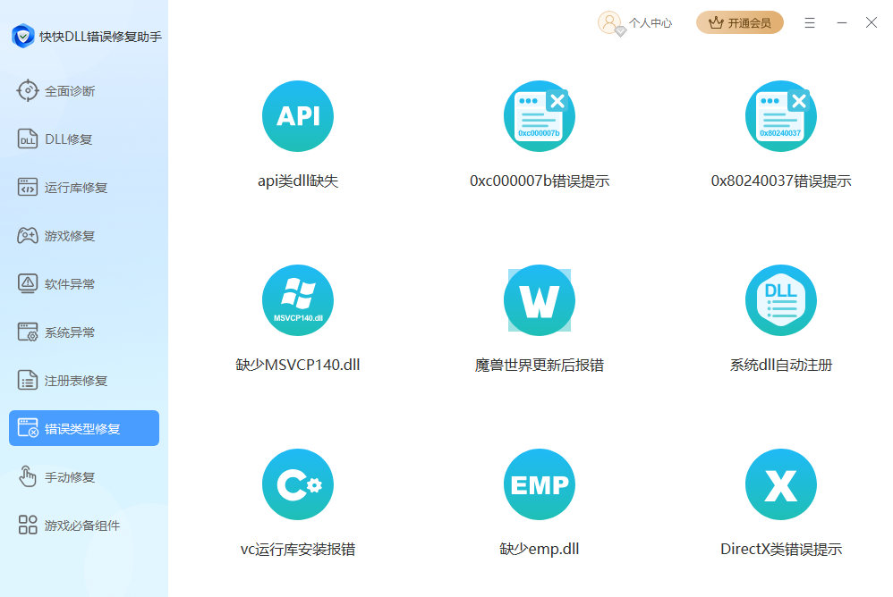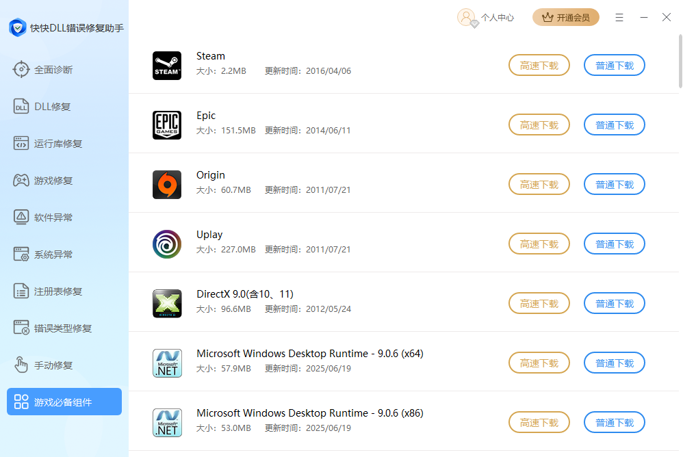 快快DLL错误修复助手是一款专为Windows系统设计的运行库修复工具,它能够自动扫描并修复因缺失DLL文件而导致的游戏或软件无法正常运行的问题。软件集成32位和64位运行库,涵盖DirectX、VC++、C++、.net等常用组件,提供全面的运行库合集,用户只需一键操作即可快速修复如d3dx9_43.dll、msvcp.dll等常见缺失文件,简单易用,可有效提升系统兼容性和稳定性。