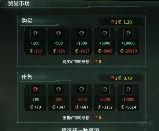 6、这时候先不要忙着改,回到游戏打开贸易市场随便进行交易以改变能量币数值方便二次筛选。