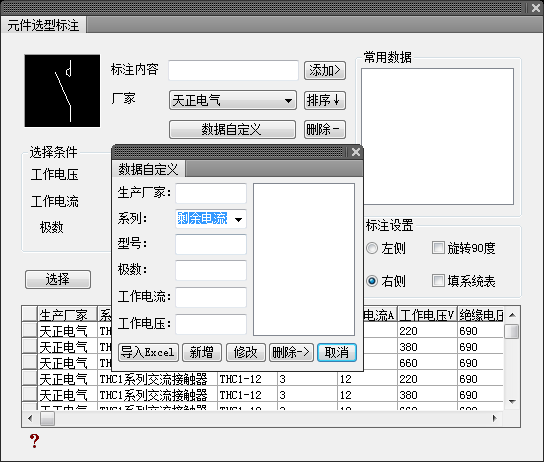 【元件标注】提供元件型号、厂家等数据的自定义功能,支持Excel导入数据。