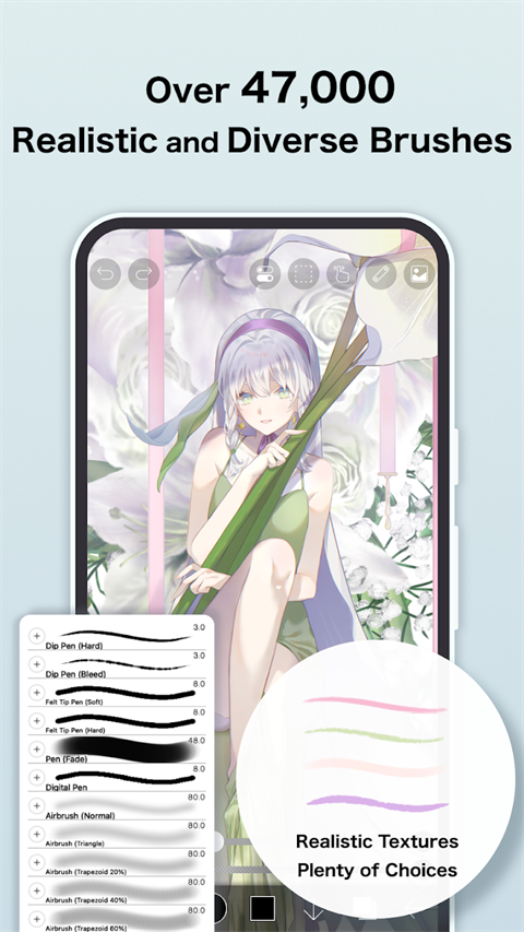 1、功能高度专业,性能甚至超越部分桌面端绘画软件 2、基于OpenGL技术,实现流畅、舒适的绘画体验 3、可将绘画过程完整录制为视频 4、内置SNS社区功能,可观看并学习其他用户的绘画过程与技巧爱笔思画x功能