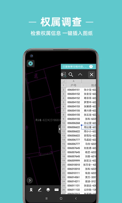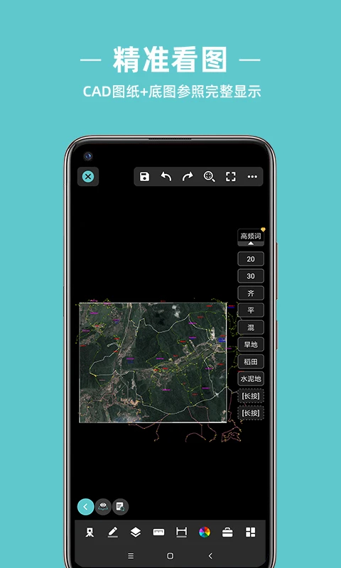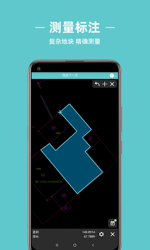 1、权属调查 载入权属关系表,支持关键词检索,单元格内容一键插入图纸 2、底图参照 浩辰CAD测绘手机版支持tfw\jgw格式位置文件原坐标插入航测图片 3、插入照片 图片链接插入图纸文件名自定义,方便内业管理 4、绘图工具 真正的CAD图纸绘制、测量、标注、搜索、捕捉等编辑功能 5、模拟鼠标 独有的模拟鼠标功能+智能捕捉,给你极致的移动CAD操作体验 6、云图分享 一键同步云图,多种社交工具轻松分享浩辰CAD测绘手机版如何测量长度