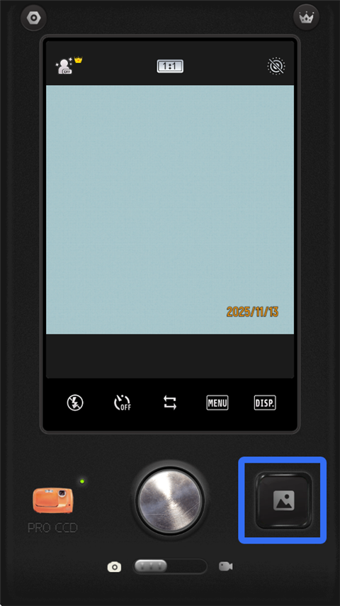 1、打开ProCCD复古CCD胶片相机app,点击快门右边图标。