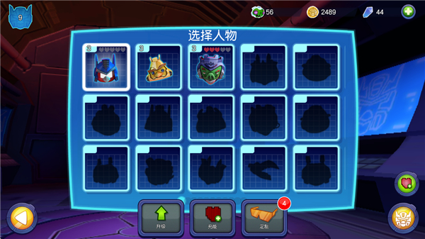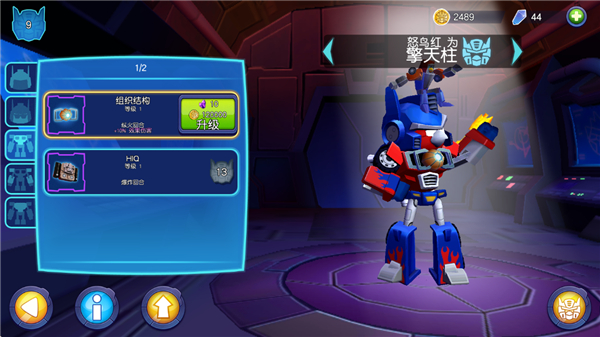 7、玩家还可以升级你的小鸟的变形金刚,如果显示没有血量点击充能可以回复血量;