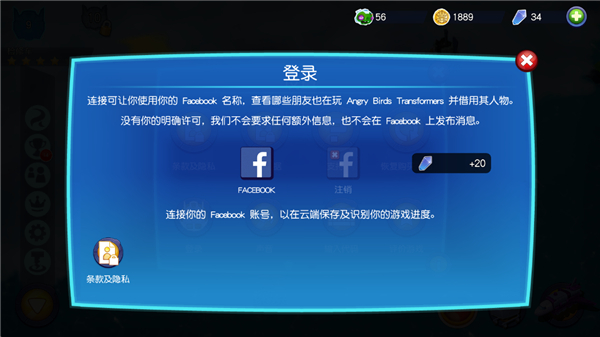 3、登录FACEBOOX账号才能保存当前进度,否则玩家可能下次更新版本就没有进度了。