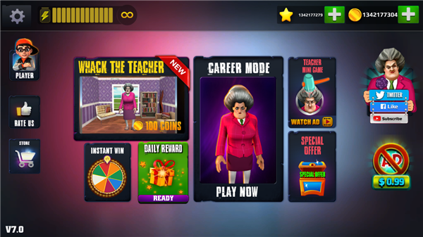 1、卡通的场景和角色,3D的模型和视觉体验,让整个冒险更加刺激有趣。 2、老师的造型非常的独特,一看就是不是什么好老师,所以不要被逮住。 3、房间中大量的道具都能被你发现且能够灵活的利用,帮助你完成关卡。 4、你将偷偷的潜入老师的房子中,仔细的观察他的每一步的行动过程。 5、提前在不同的地方设置好各种能够整蛊的陷阱并让自己躲藏的更好。恐怖老师3D版游戏玩法介绍