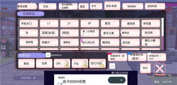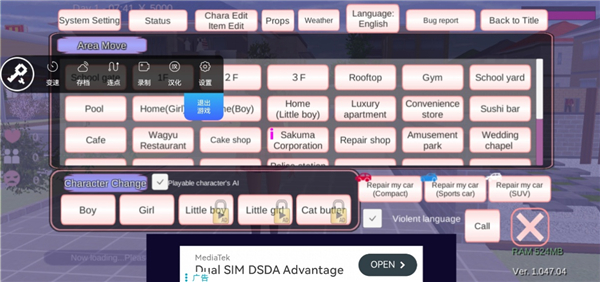 3、进入游戏界面后点击悬浮窗中的汉化功能;