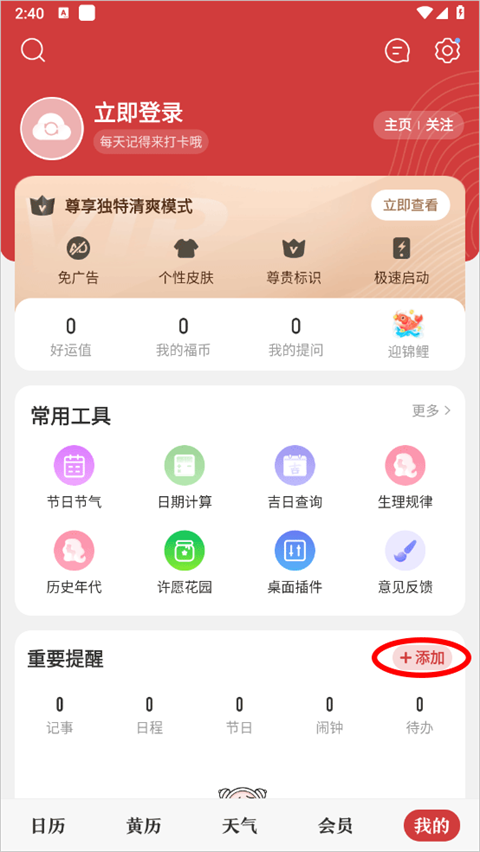 1、日历: 农历黄历随便看,假日节气道道全。 2、天气: 支持天气背景随天气变化,提供空气质量、灾害预警等全方位信息。 3、个性阅读: 新闻、亲子、情感、旅行、赛事…定制个人阅读口味,你在乎的,我们都懂。 4、生日、纪念日、倒数日:支持通讯录、社交网络上的重要日期一键导入。 5、记事: 支持多次、周期性重复提醒,支持添加涂鸦、录音等信息。 6、云同步: 支持手机、Pad、网页端实时同步。 7、私人定制: 支持全屏半屏日历样式、多种主题皮肤。中华万年历app怎么设置重要提醒