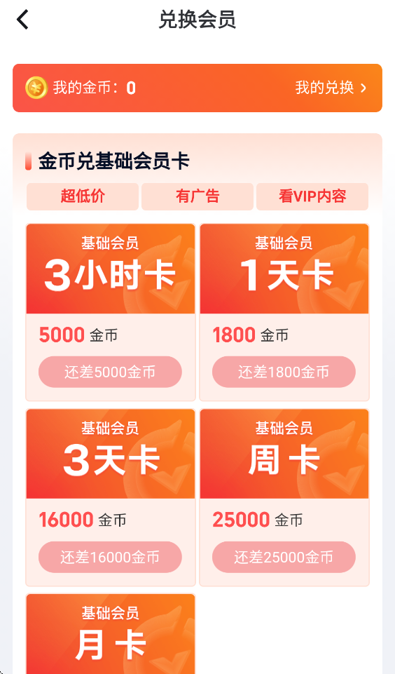 4、当你的金币累计的差不多时,我们来带最顶上,找到【兑会员】点击。