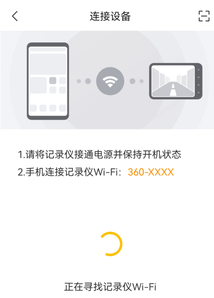 7、也可点击右上角的扫描图标,扫描记录仪二维码连接设备。