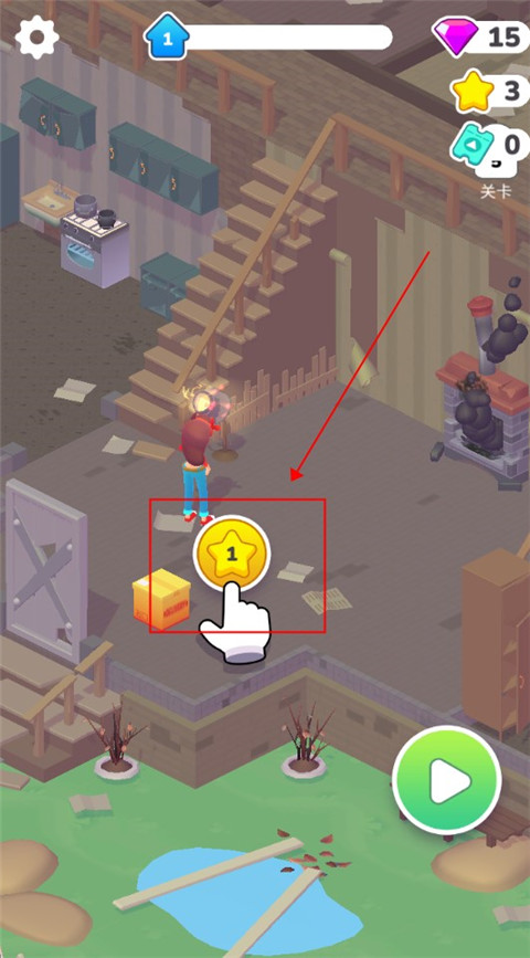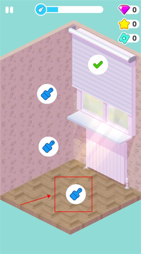 4、进入关卡后,在这里我们点击此处就可以开始装饰房间了