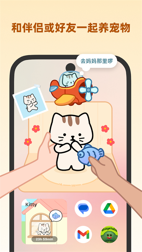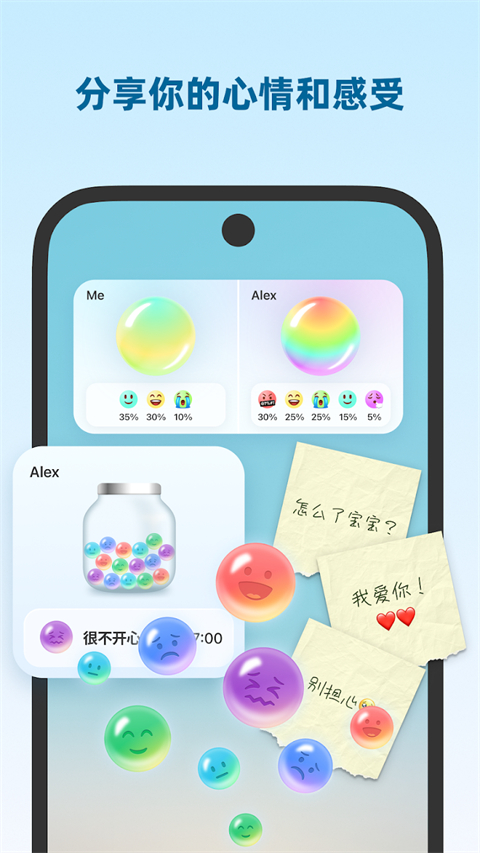1、宠物小组件&宠物合养 你可以在手机桌面上养萌宠啦!它们会成为你忠实的朋友,给你带来陪伴和欢笑。别忘了好好照顾你的小宠物,让它们才能时刻保持健康和活力。还可以和朋友或伴侣一起合养宠物,一起照顾你们可爱的小伙伴吧! 2、情绪泡泡 将不同颜色的药水倒入泡泡中,生成专属于你的情绪泡泡。还可以和你的朋友或伴侣一起添加情绪泡泡,用五彩缤纷的泡泡装点对方的桌面,让对方更好地了解你的情绪。 3、植物小组件 在你的手机桌面上培育自己的植物吧!多种植物可选,包括花卉、绿植和水果等,成熟后还能装扮你自己的专属花园。 4、距离小组件 可以在桌面上展示你和对方的实时距离,你总能知道你离你的朋友或者恋人有多远。 5、状态和心情小组件 展示你和对方的最新状态,当TA感到沮丧时,给TA发一个爱的抱抱吧! 6、好友留言板小组件 可以互相在对方的手机桌面上留下文字,让TA不经意期间看到你的暖心留言。 7、想你小组件 可以在手机桌面上看到对方想念你的次数,想TA就给TA赠送心心,让TA随时感受到你的爱。widgetable怎么设置中文