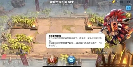 一、活动难度: 黄金之国的守卫实力与执政官当前战力相匹配,战力越高,通关难度越大! 二、玩法简介: 执政官通过驱散迷雾开启随机事件,找到并击败【关底守卫】后可进入下一关。挑战总共有20关,每四关(即4、8、12、16、20)为奖励和补给关,事实上只需挑战15关。 三、建筑介绍: 增援营地:可以招募一支部队协同作战; 祭司疗所:可以立即恢复一支部队50%的兵力; 卡鲁拉克祭坛:可以复活一支阵亡的部队; 巫毒之痛:第10关开始出现,每驱散一格带有巫毒的迷雾,减少全体部队5%兵力;