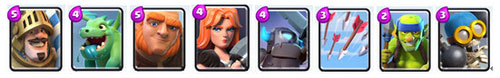 10、推进流卡组(低杯段):王子+飞龙宝宝+巨人+瓦基丽武神+迷你皮卡+万箭齐发+哥布林投矛手+炸弹兵