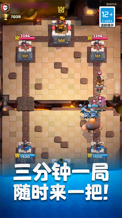 1、与全世界的玩家进行实时对战,击败他们,赢取奖杯。 2、解锁宝箱以获得强大的新卡牌,并升级你现有的卡牌。 3、摧毁对方皇家塔赢得皇冠,获取充满惊喜的皇冠宝箱。 4、在各个级别的竞技场上挑战其他玩家,一步步登上颠峰。皇室战争bilibili版规则介绍